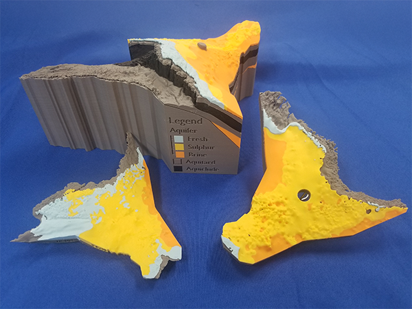 reintroduced our Southern Ontario Hydrostratigraphy 3D printed model. Building on our original resin models, this updated version uses a completely new material and process, allowing for finer detail, enhanced usability, and a larger format.